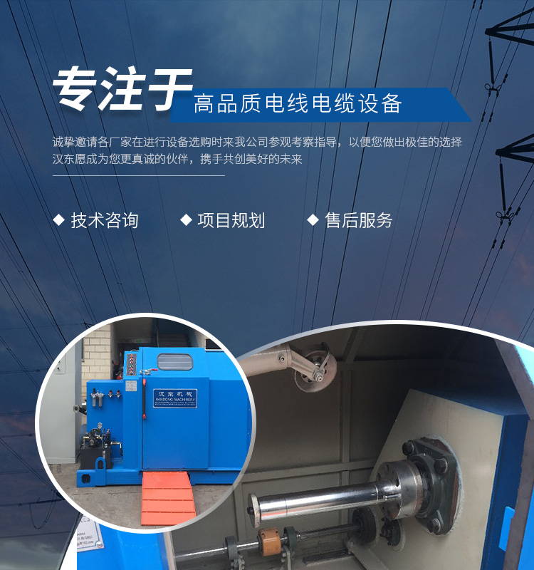 常州漢東機械始創于2006年,是集電線電纜機械設計、開發、制造、安裝、調試為一體化的高科技企業。本公司自開業以來,積極引進日本,歐美等國外電線電纜設備之先進技術,先后成功推出了達到行業先進水平的電線電纜設備,主要產品有擠出、繞包、束線、成纜等電線電纜固定設備。在提供系統設備的同時,還向客戶提供售前技術咨詢、項目規劃、以及售后服務。我公司本著“以人為本、科技先導、用戶為上”的宗旨,為客戶提供牢靠的產品與省心的服務。漢東愿成為您更真誠的伙伴,攜手共創美好的未來! 了解更多+大核心優勢